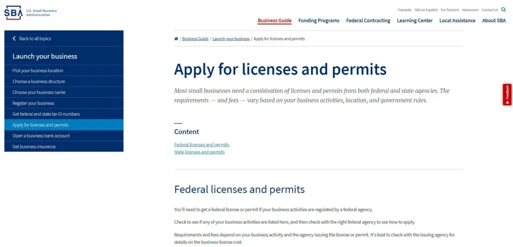 The US Small Business Administration website offers more detailed information on federal licenses and permits required in the USA. It states that you'll need to get a federal license or permit if a federal agency regulates your business activities (i.e., the types of products you sell). The fees depend on your business activity and the agency issuing the license or permit.
