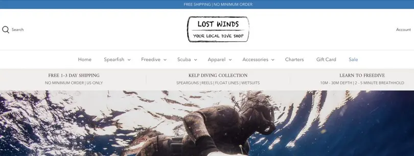 Lost Winds is an independently owned and operated dive shop and has been in business for just over five years. Two things that immediately catch your attention are their wide range of products and various payment options on offer. At a quick glance, you might think that you’ll have difficulty finding your way around the website’s navigation, but the clever use of white space means that you never feel overwhelmed by all the options.