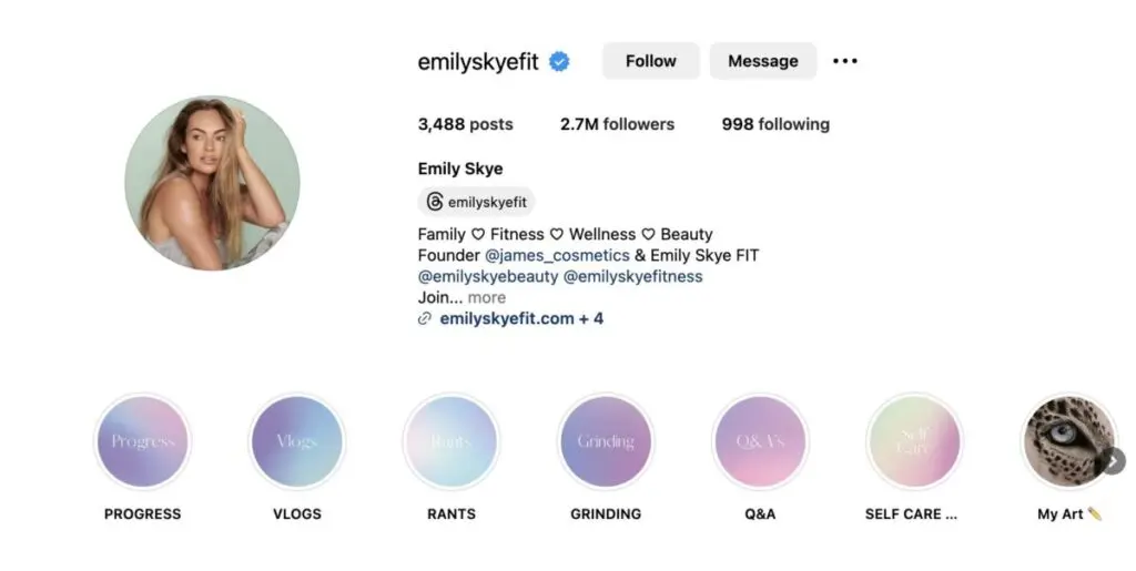 Las imágenes de su Instagram parecen ser una mezcla de salud, personas en forma, junto con videos de ejercicio, que muestran algunas de sus rutinas.