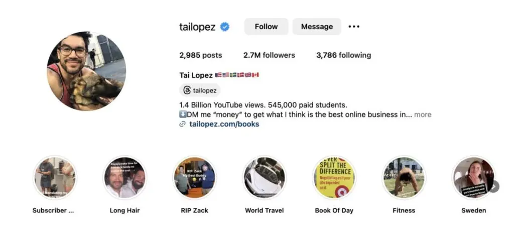 Tai López trabaja con alrededor de 20 empresas multimillonarias como inversionista, socio, consultor y asesor. Usa internet para motivar a los negocios y a las personas a lograr el éxito financiero. Esto incluye gestionar un club de lecturas con emails del Libro del Día y producir podcasts.