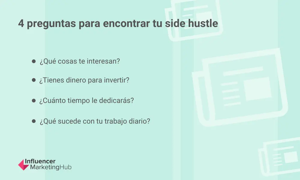 A muchas personas les encanta la idea de tener un side hustle para ganar más dinero, pero no saben cómo comenzar. Afortunadamente, es muy fácil encontrar el side hustle ideal para ti. Sólo debes contestar estas cuatro preguntas.