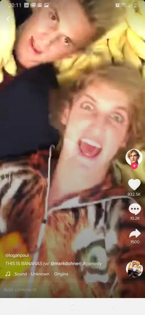 En el siguiente ejemplo, Logan Paul hizo una colaboración con Mark Dohner. El video generó +932.500 Me Gusta y se compartió 1500 veces.