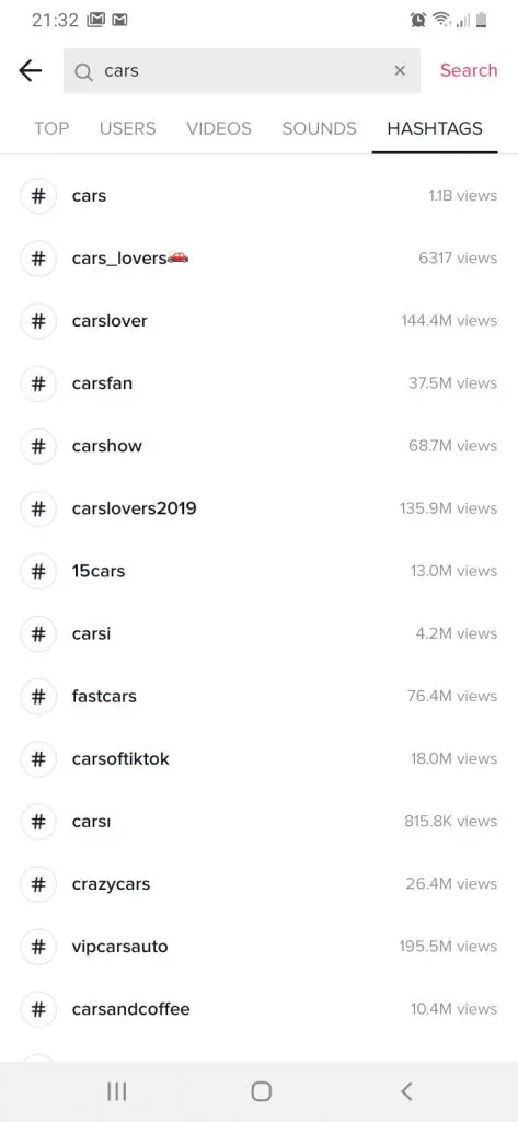 Si bien podrías elegir todos los hashtags, debes ser más específico. Elige hashtags que tengan muchas vistas pero que sean más relevantes para el término de tu búsqueda. Este método hará que tu contenido sea más relevante para los TikTokers que se topen con él. Y si les gusta lo que has creado, hay una mayor chance de que se conviertan en tus seguidores.