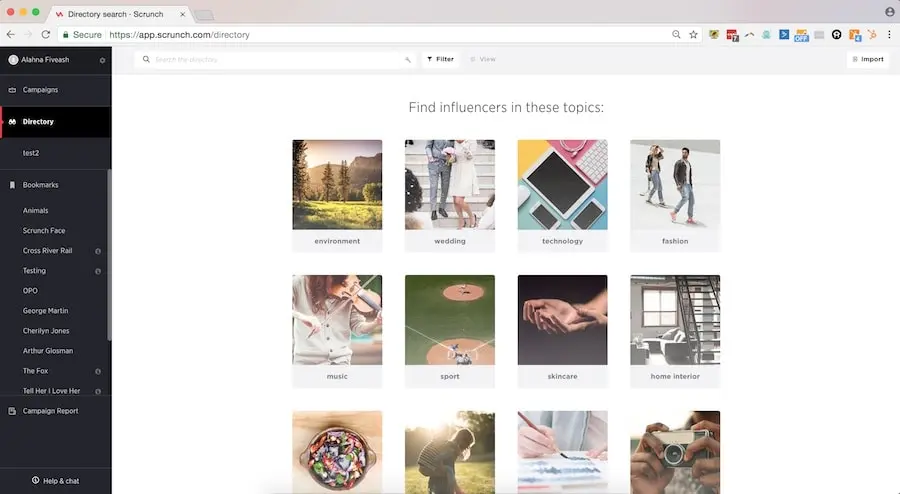 La base de datos de Scrunch tiene 20 millones de influencers, así que seguramente encuentres influencers, sin importar el nicho en el que operes. Con una base de datos tan extensa, deberás mirar minuciosamente tus resultados para encontrar el mejor influencer para ti.