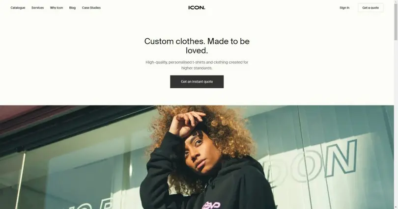 Icon Printing va un poco más allá de los servicios de impresión bajo demanda y te ayudará a encontrar, entre otros, los cortes, estilos, materiales, colores y diseños más adecuados para que estés seguro de que tus productos son algo que encantará a tus seguidores. Dado que Icon Printing no es una empresa de impresión bajo demanda, existen requisitos mínimos de pedido. Para los productos con técnicas de bordado y serigrafía, debes pedir un mínimo de 20 productos por diseño (puedes mezclar y combinar los tipos, tamaños y colores de prenda); para los productos con técnicas de transferencia e impresión directa en la prenda, hay una cantidad mínima de pedido de 10 artículos por diseño. Algunos de los socios de Icon Printing son Topshop, Karma Cola y Tate Britain, entre otros.