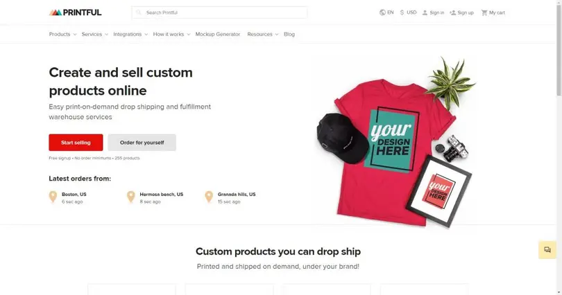 Printful es un servicio de almacenamiento y cumplimento de pedidos bajo demanda. Completan los pedidos y envían los productos para las marcas, tales como ropa, accesorios, decoración del hogar y artículos de estilo de vida. No hay tarifas establecidas, tarifas mensuales ni requerimientos mínimos de pedidos — producen sólo lo que fue pedido para que no se te llene la casa con el merchandise destinado a tus seguidores. Puedes conectar tu propia tienda online con Printful, así en cualquier momento que un seguidor compre algo, el pedido se dirige directamente a Printful para que lo completen y lo envíen directamente al cliente.