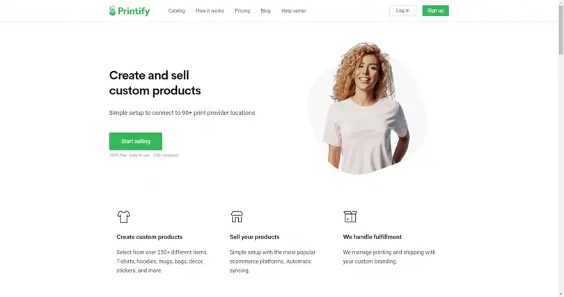 Printify es una red de impresiones bajo demanda similar a Spreadshop y Bonfire. Ellos se esfuerzan por simplificar y automatizar el proceso de almacenamiento y creación a los mejores precios del mercado. Comienzas eligiendo tu producto de los más de 200 productos que posee el catálogo de Printify. Luego, utilizas el generador de maquetas de Printify para agregar diseños a tus productos. Fácilmente puedes subir diseños, cambiar colores y realizar vista previa de tus productos con imágenes de alta calidad. A partir de ahí, puedes pedir muestras para asegurarte de que tu producto final es exactamente lo que quieres o probar diferentes productos. Cuando estés conforme con tu producto final, sólo debes publicarlo en tu tienda online. Printify integra plataformas líderes de e-commerce como Etsy, Shopify y eBay, para que sea más fácil llevar tus productos a tu tienda. Cuando realizas una venta, tu producto pasa por un control de calidad antes de ser enviado directamente al comprador.