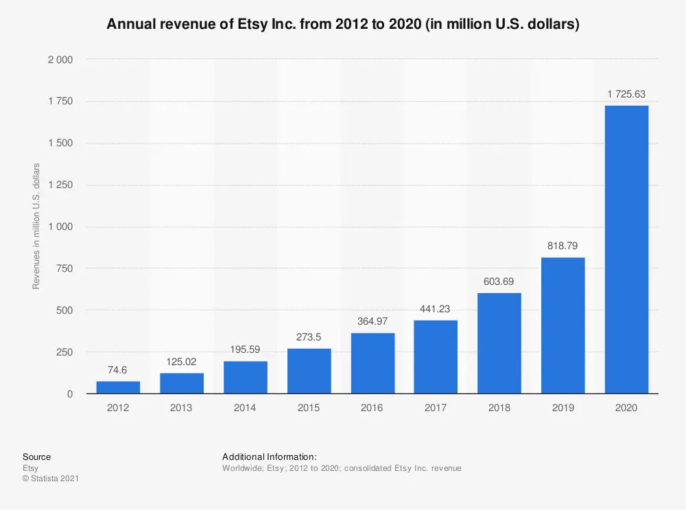 Etsy generated revenue worth US$1.7 billion in 2020.