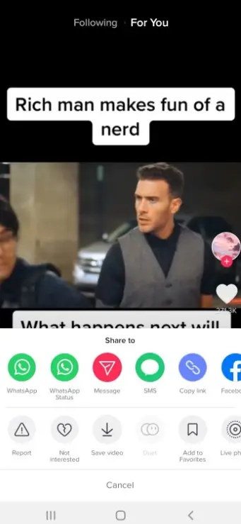 - You also have access to other features like a Report button to report any appropriate content, the Not Interested button that will immediately remove the video from your feed, the option to save the video, created a duet, react, add the video to your favourites, create a Live photo, and share the video as a GIF.