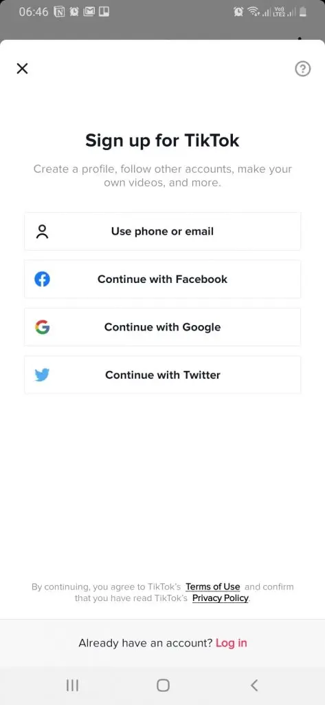 Creating an account is simple. TikTok allows you four options. You can create a native TikTok account using your phone number or email account, or set up your TikTok account using your Facebook, Google or Twitter social media accounts. To create your account you'll need to enter a birthdate (you have to be 13 years older), a username (which you can always change at least stage), and you're good to go.