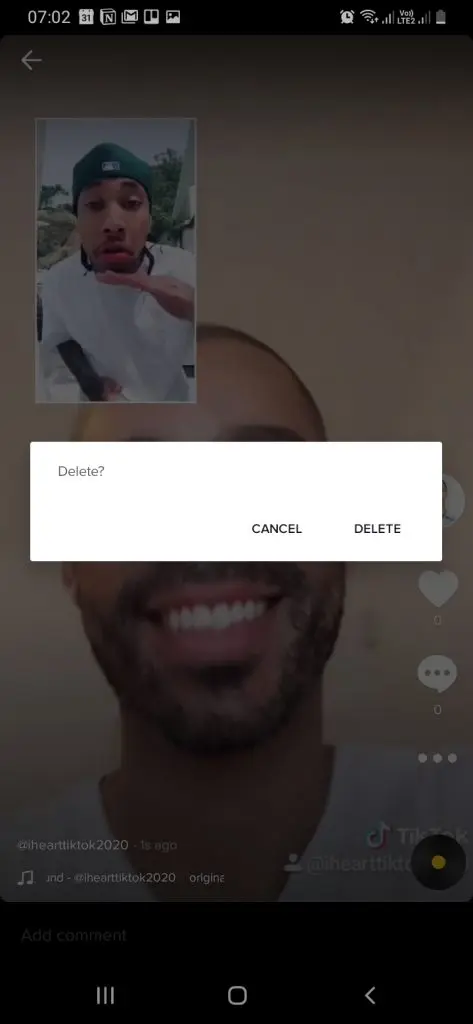 Want to get rid of a video? Go to your profile and select the video you want to delete. Next, tap the three dots on the right side of the screen to show the menu. Swipe through all options and choose Delete.