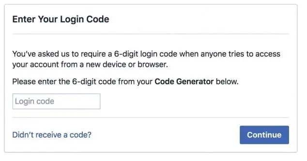 When you try to log into Facebook from a new device, the social channel will ask you to type the login code from your Code Generator.