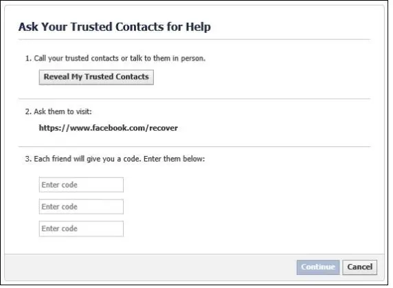 Enter the full name of one of your trusted contacts and read the instructions that follow. You will receive a special link containing a recovery code your trusted contact can access. Send this link to any of your chosen friends so they can open it. Facebook will then generate a login code you can use—ask your friend to send you that code.
