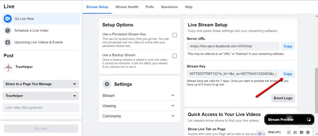 On the other hand, with OBS, you’ll need a stream key to go live and that key will change each time you go live. So you should consider getting a static one. Follow these steps on the Facebook Gaming platform to get a static key: