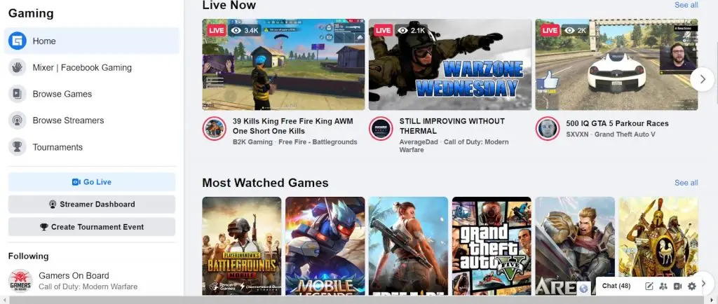 Facebook Gaming is a great platform for game lovers to both showcase their game prowess and also follow other gamers. It’s built into the main Facebook platform so it’s easy to access as well.