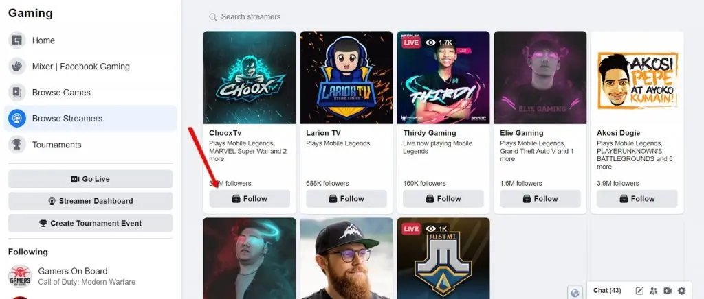 Yet another way of finding new streamers on Facebook is through games. Once you’ve found your favorite game, you can scroll down and see the top streamers for that particular game. You can then follow them by clicking on “Follow”.