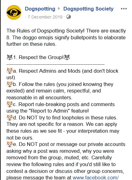 Facebook allows up to 10 group rules. For inspiration, here are some example rules that you can set: