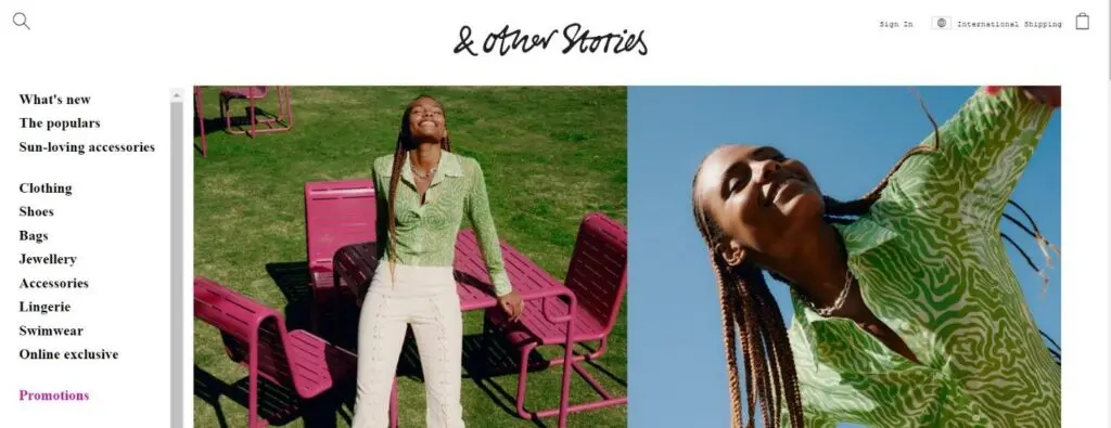 & Other Stories offers a wide range of shoes, handbags, accessories, cosmetics, and ready-to-wear products for women to express their style. Associate marketers at the shop receive various benefits, including access to the company's three design ateliers in Paris, Stockholm, and Los Angeles. Affiliates can also access promotional tools and a large selection of text links after signing up for free.