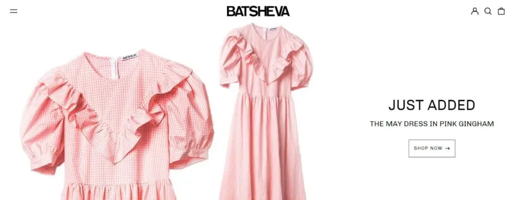 Batsheva is a ready-to-wear company that manufactures housedresses, shirts, skirts, and trousers with Victorian and Prairie-inspired designs. Batsheva Hay created the shop in 2016, intending to update American feminine fashion traditions like high collars, voluminous sleeves, and puffy skirts, which are associated with restriction and suppression. Affiliates of Batsheva have the opportunity to earn freebies in exchange for brand promotion.