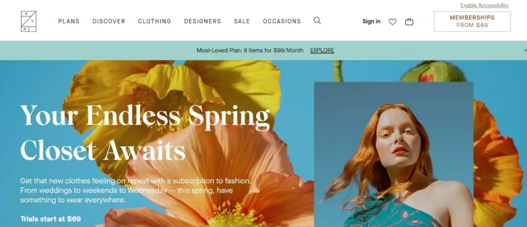 With Rent the Runway, a premier subscription fashion service, customers may borrow designer outfits for work, weekends, and special occasions. Members gain access to thousands of styles for a monthly charge. Each member receives four goods at a time, with varying frequency of new shipments. Rent the Runway affiliates will get text links, ad banners, and various incentives for brand promotion.