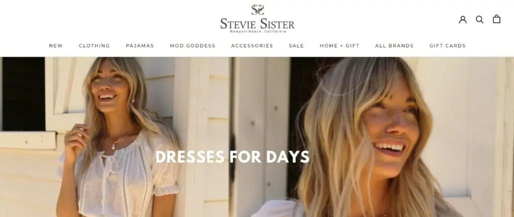 Dresses, blouses, bottoms, rompers, and tanks by Stevie Sister are vintage-inspired bohemian clothing. With a mix of flirty, soft silhouettes in exquisite florals and contemporary designs, lace-up details, frills, and high slits, Stevie Sister has rapidly become a local favorite in Southern California. Affiliates of Stevie Sister appeals to a bohemian-style fashion crowd.
