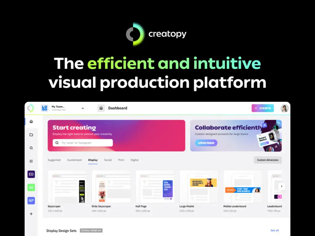Working with Creatopy really is a pleasure. You can create excellent banners quickly and easily, but with an incredible quality because their templates help a lot in this aspect. Another aspect that we love is that anyone can work with it and create an excellent design so imagination is the limit. Of course as you become familiar with the program and know their potential in that same measure you will feel more confident to work with it.