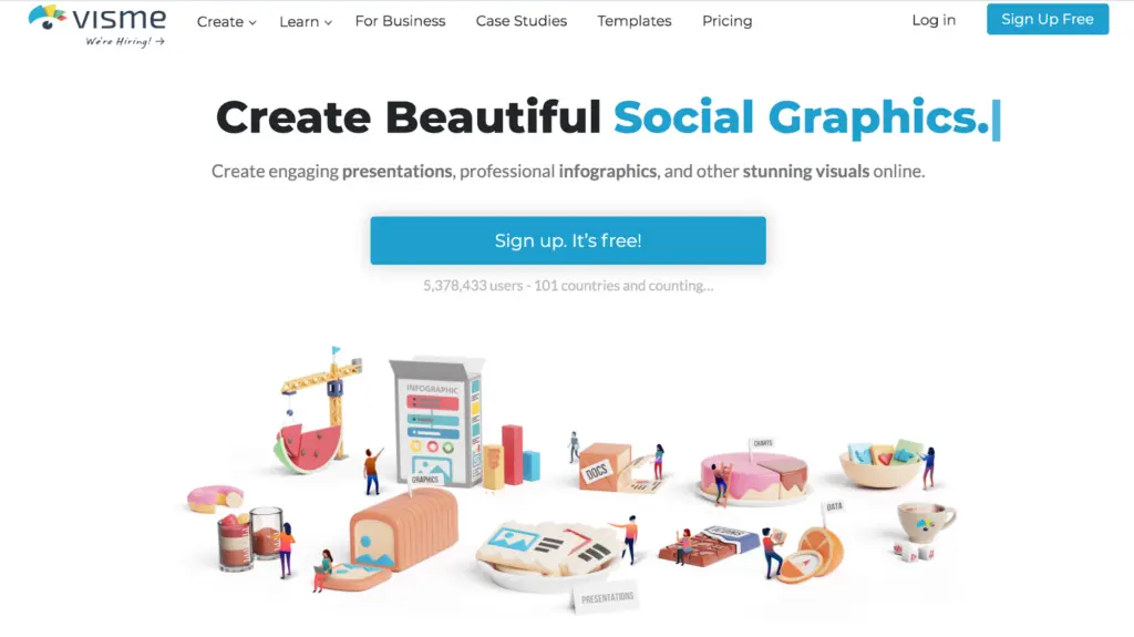 With Visme, you can upload your brand colors, fonts, and several other design elements. However, these features are only available for you only if you have Visme’s brand kit setup. It requires you to buy the standard package. Therefore, using the free version might limit your options if you’re looking to create a personalized brand cover. Visme is easy to use and creates very professional looking, unique graphics. Pre-defined templates in various categories allow easy and quick data arranging which makes it attractive for viewers.