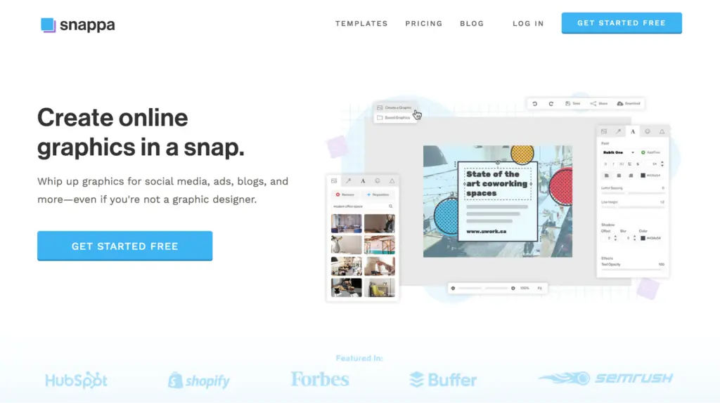 This platform allows users to create visual content without having to deal with the complexities involved in other image editing platforms such as Photoshop. Snappa offers free-to-use graphics, allowing individual entrepreneurs, small businesses, and freelancers to create designs without spending a buck on images.