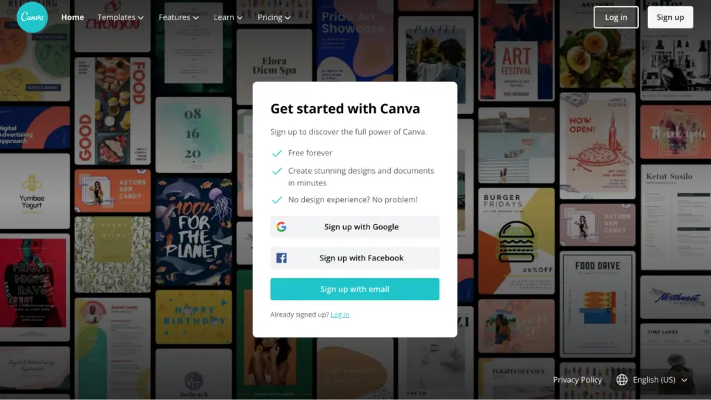 - Create an account with Canva.