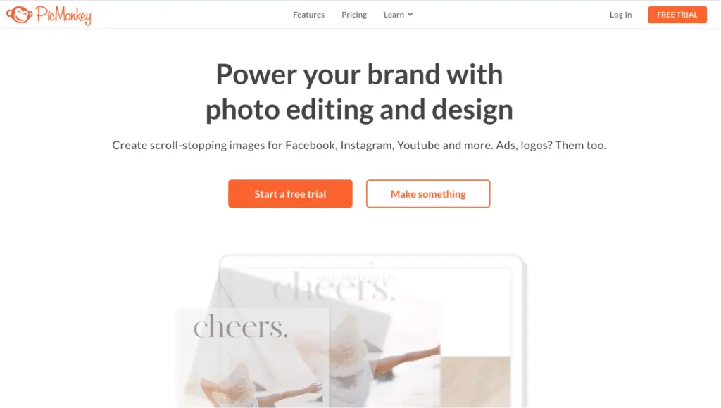 PicMonkey has most of the essential tools needed to make graphics or edit photos that photoshop does, but it's more user friendly in terms of interface and beginner’s knowledge. Like Photoshop without the technical jargon, but all the capability, at a fraction of the cost. The remove background tool addition has made this even more the case.