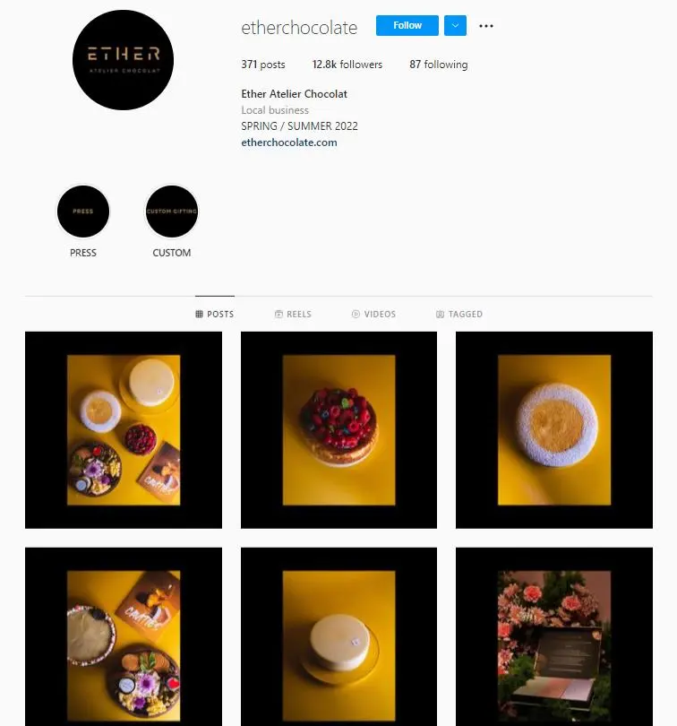 For example, Ether Chocolate uses borders that frame their images in a vertical format. The sophisticated black borders align with the brand’s luxurious and exclusive vibe.