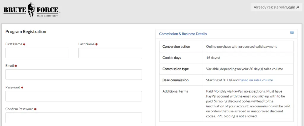 Signing up for its online fitness affiliate program is totally free. Once you’re approved, you have the opportunity to earn a 5% commission on all sales that come from the customers you refer. You also have a 30-day cookie duration, a scheduled pay-out every 15th of every month, and access to a dashboard that enables you to track your progress