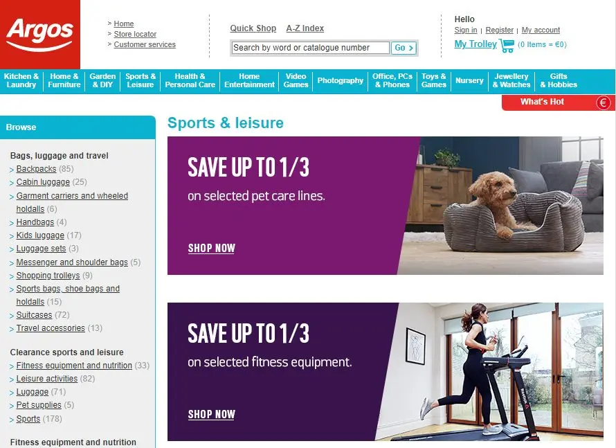 Argos is one of Ireland’s largest businesses, with more than 25,000 items available online and in-store, including sports and fitness equipment. As an Argos affiliate, you can start earning a 3% commission on all sales of products that are purchased through your unique affiliate link.