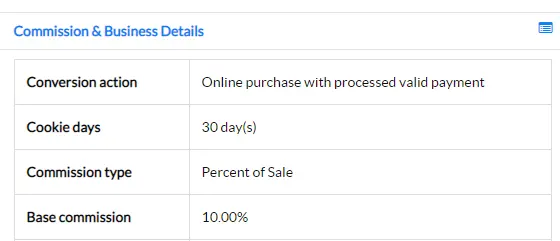 The program offers a cookie duration of 365 days. That means that you’d still earn a commission even if your customer decides to purchase something months after clicking on your link.
