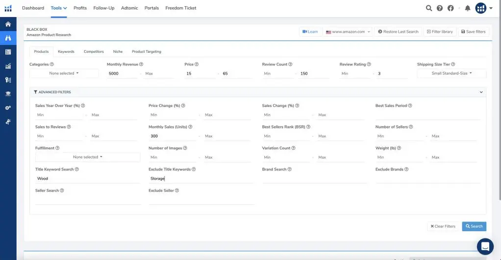 Let’s start with Black Box, which is the product research tool. This sounds like something you’d use to research your competition and see how best to position your products against them. It isn’t that. It’s actually cooler: you’ll use Black Box to find products to sell in the first place. You know how some people do well on tests, not entirely because they know things but also they’re good at taking tests? People who make money selling on Amazon aren’t just smart business people, they’re also good at selling on Amazon. It’s a specific skill, and Black Box is one way to put that skill to use. So, you begin researching products, by category and keyword, but then also with a bunch of filters. In this way you can find something that interests you, but then you can also narrow it down to something that suits your needs. Helium 10’s hooks into Amazon mean you’re getting data directly from the source, so you’re not taking guesses at how something performs on Amazon. You’re getting the exact information of how it performs.