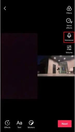 Additionally, you can tap on the voiceover button on the right-hand panel to add a voiceover. Adjust the timing of your voiceover using the navigation bar at the bottom of the screen and begin recording.