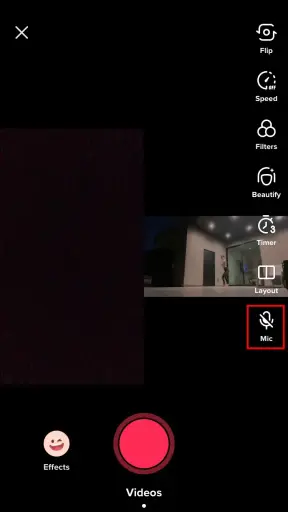 By default, the sound from the original video will be used in your Duet video and your mic will be turned off. However, you have the option to change this. To record your audio, make sure to turn on your mic on the right-hand panel before you begin recording. This will allow you to record music or your own audio to add to the finished video.