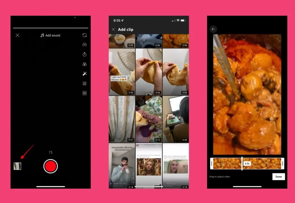 Step 4: Drag the indicator at the bottom of the screen to adjust the length of the video. Then tap “Done” to finish the selection. Depending on the length, you can upload more than one video and combine them into one Shorts.