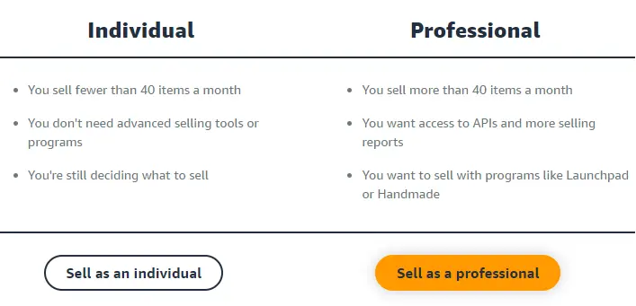 - Choose a plan. Click on either Sell as an individual or Sell as a professional.