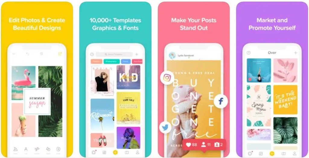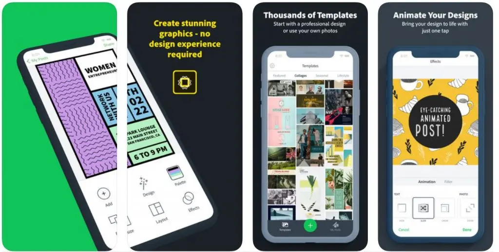 With beautiful, hand-curated and easy-to-edit photo and video templates, Over helps you create impactful content that will make your brand stand out. The best part? You don’t need a design degree to use it. The app has thousands of professionally designed and fully customizable templates. Templates can be customized to fit with the colors, videos and photos, graphics and fonts associated with your brand. As with most of the other apps, you can post directly to Instagram from the app.