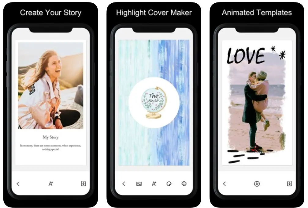 This is one of the highest-rated Instagram Story editing apps on both the Play Store (4.7 stars) and Apple Store (4.8 stars). The app provides a massive variety of templates (more than 200 templates) that you can directly use to create your Instagram Stories. Apart from the templates, it also provides myriad options to add design effects. You can add text with varying fonts, filters, themes, and other design effects.