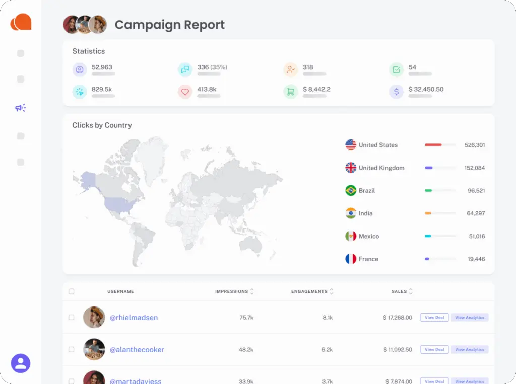 Reporting focuses on ROI and operational clarity: impressions, clicks, sales attribution, UGC volume, and gifting activity are centralized so teams can evaluate what’s working and double down quickly. This is especially relevant for brands treating influencer marketing as a performance channel rather than a pure awareness play.
