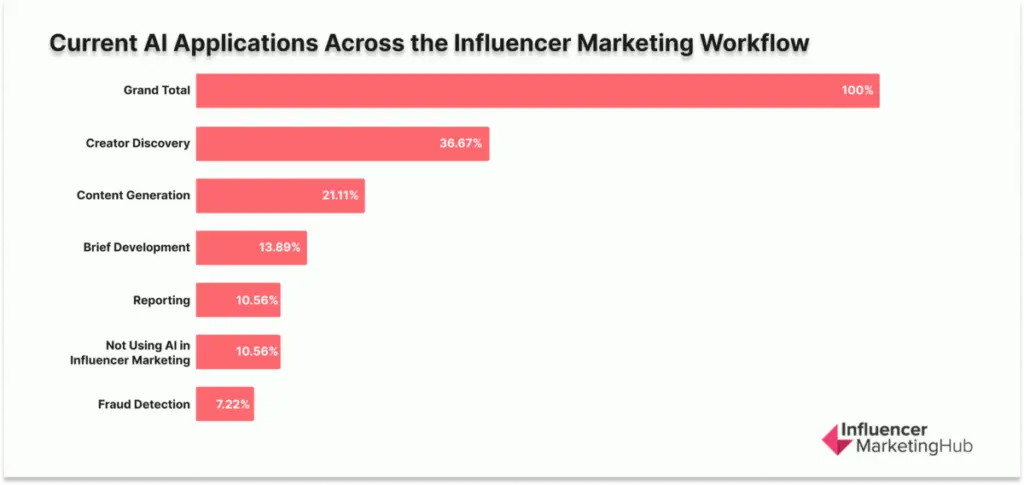 AI is being applied where influencer teams feel the most immediate scaling pressure: creator discovery leads adoption at 36.67%.