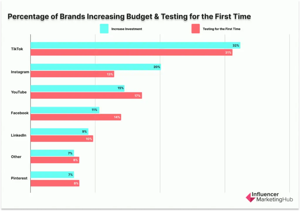 TikTok is the highest-incidence platform among brands increasing investment (32%) and those testing influencer marketing (31%). More telling: TikTok is also highest among brands planning to decrease investment (39%).