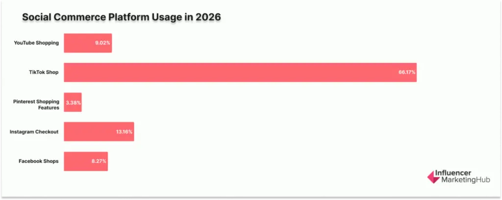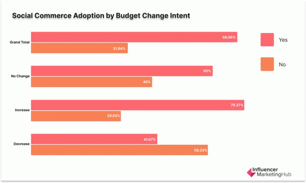 - Social commerce is not universal—but where it exists, it’s TikTok-first. TikTok Shop is the most selected social commerce feature; adoption is higher among brands increasing budgets.