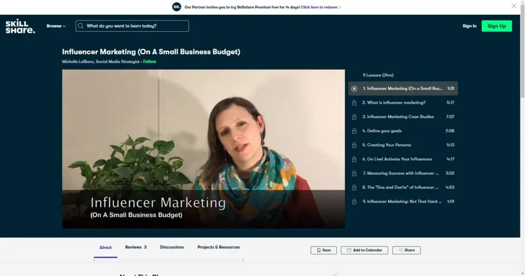 In this Skillshare course created by Michelle LeBlanc, you'll learn how to use influencer marketing even if you're operating on a small business budget. You'll learn what influencer marketing means, who your ideal influencer is, how to approach and onboard influencers, and how to measure the success of your influencer marketing campaigns. If you're a small business owner or marketer, particularly if you've never run an influencer program before, this might be the course for you.