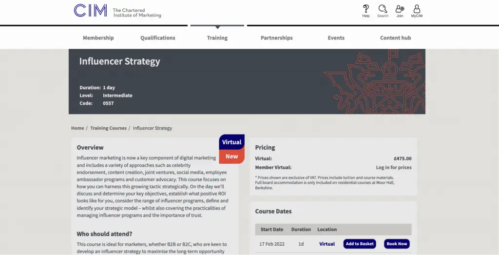 This Chartered Institute of Marketing course created by Michelle Carvill is ideal for marketers, whether B2B or B2C, who are keen to develop an influencer strategy to maximize the long-term opportunity influencer marketing can bring to your brand or organization.