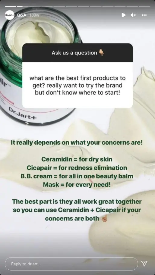 Nothing beats asking professionals for expert advice, especially when it comes to skincare. Cosmetic brand Dr. Jart (@drjart) showcases their expertise on skincare by answering the audience’s questions and concerns. The brand also gives advice aside from introducing different products and their purposes.