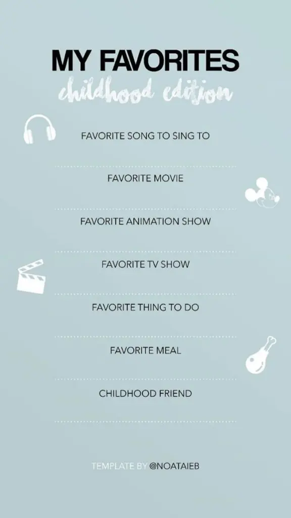 @Noataieb makes a simple slam book page that encourages his followers to share their favorite things, but adds a simple twist by noting the choices should be from their childhood.