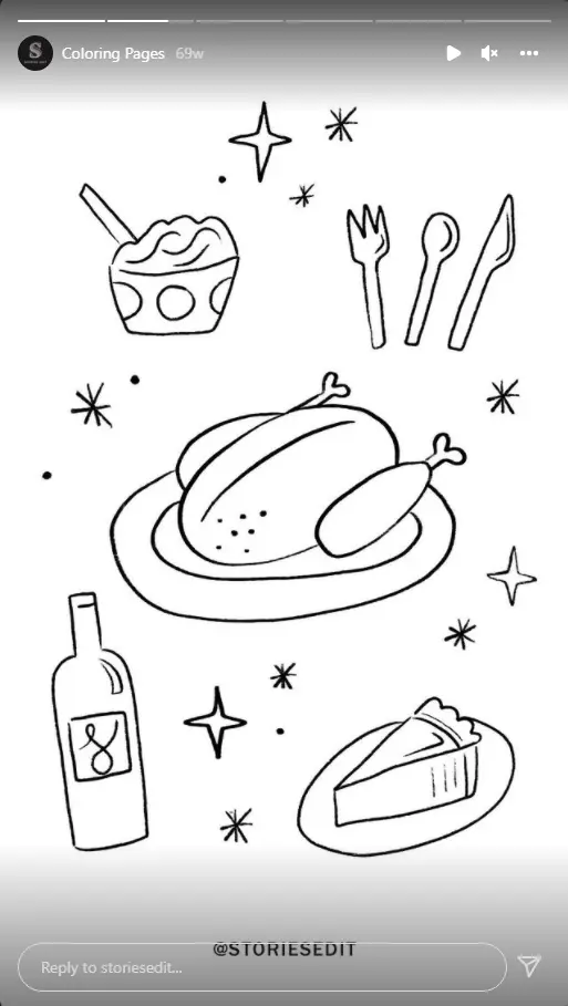 Coloring pages don’t have to be complex. You can invest in purchasing digital coloring pages, or draw your own illustrations. Followers can take a screenshot of your Story post, color the page, and repost it on their Instagram Stories.